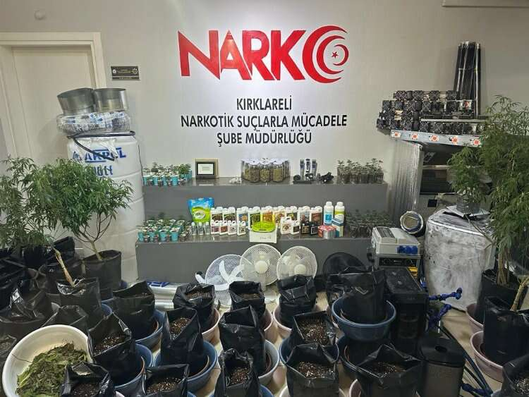 Operasyonda, 5 kilogram 450 gram esrar, 150 kök Hint keneviri, hassas terazi, iklimlendirme sistemi, kenevir tohumu, etil alkol ve bitki besini ele geçirildi.