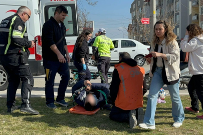 Kazada yola savrulan motosiklet sürücüsünü görenler yardıma koşarak, yaralı vatandaşa dakikalarca teselli verdiler.