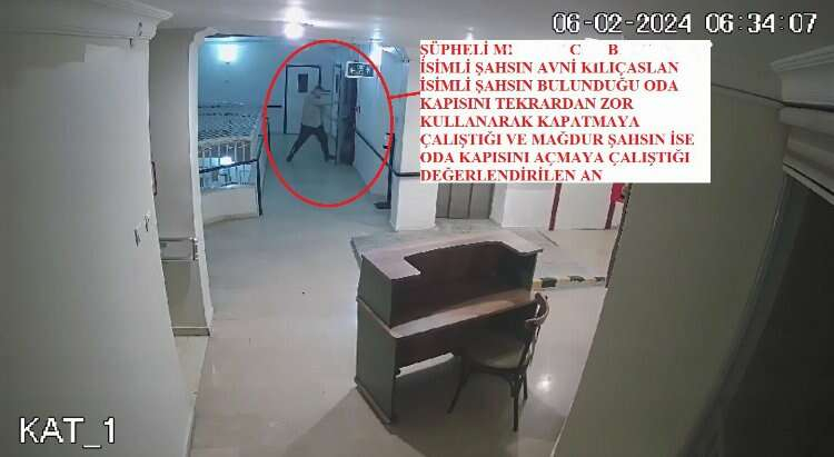 Olayı soruşturan Çerkezköy Cumhuriyet Başsavcılığı koordinesinde polis ekipleri, kurumun tüm kameralarını incelemeye aldı. Kurumun güvenlik kamerası görüntülerinde 2 kurum personeli olan M.S. ve M.C.B.'nin A.K.'yi zorla odasında tutmaya çalıştığı, odadan dışarı çıkmak isteyen A.K.'yi oda kapısının kurum personelince defalarca tekmelendiği görüldü. Güvenlik kamerası görüntülerinde zor kullanmaya çalışan kurum personeli M.C.B. ve M.S.'nin yaşlı adamın odasına girerek bir süre içeride kaldığı görüldü. Güvenlik kamerasının görmediği odaya sokulan yaşlı adamın o sırada darp edildiği iddia edilirken, uzun bir süre sonra personelden M.S.'nin A.K.'yi tekerlekli sandalyede baygın halde içeriden çıkardığı gözlendi.
