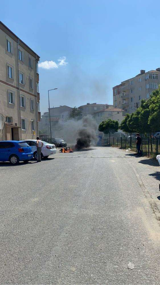 Edinilen bilgilere göre, Tekirdağ Kapaklı Atatürk Mahallesi Hafızlar Sokak'ta seyir halindeki bir kuryenin motosikleti henüz bilinmeyen bir sebeple alev aldı. Yükselen dumanı ve motosikletin yanmasıyla birlikte ortaya çıkan patlama seslerini duyan çevre sakinleri, olay yerine gelerek araçlarını bulunduğu bölgeden uzaklaştırdı.