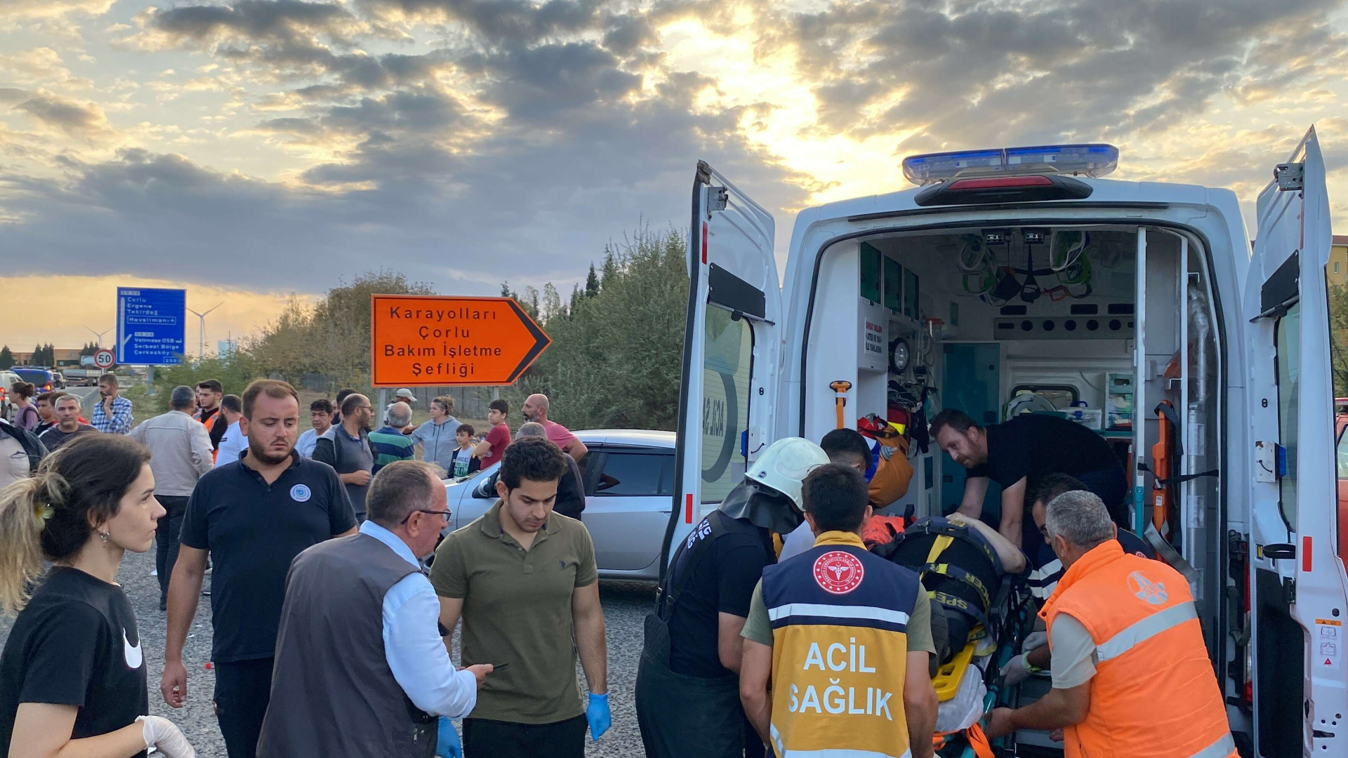 Kaza, Velimeşe Mahallesi Avrupa Otoyolu üzeri Karayolları Çorlu Bakım İşletme Şefliği karşısında meydana geldi. Edirne istikametine seyreden Kemal T. idaresindeki kamyon, yol ayrımında U dönüşü yapan Ahmet Ç. yönetimindeki yolcu minibüsüyle çarpıştı. Kazada minibüsteki 6 kişi yaralandı. Kaza sonrası olay yerine çok sayıda ambulans ve itfaiye sevk edildi. Minibüste sıkışan bir kişi itfaiye ekiplerinin müdahalesiyle sıkıştığı yerden çıkarıldı. Kazada yaralanan S.P., R.O., Ü.K., M.K., S.K. ve 1 yabancı uyruklu kişi olay yerine gelen ambulanslarla çevredeki hastanelere kaldırıldı.