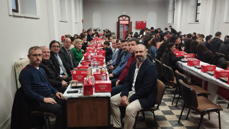 Edirne’nin köklü okullarından 1’inci Murat Anadolu Lisesi’nde iftar programı düzenlendi. Öğretmen ve öğrencilerin katıldığı iftar programı okulun konferans salonunda düzenlendi.