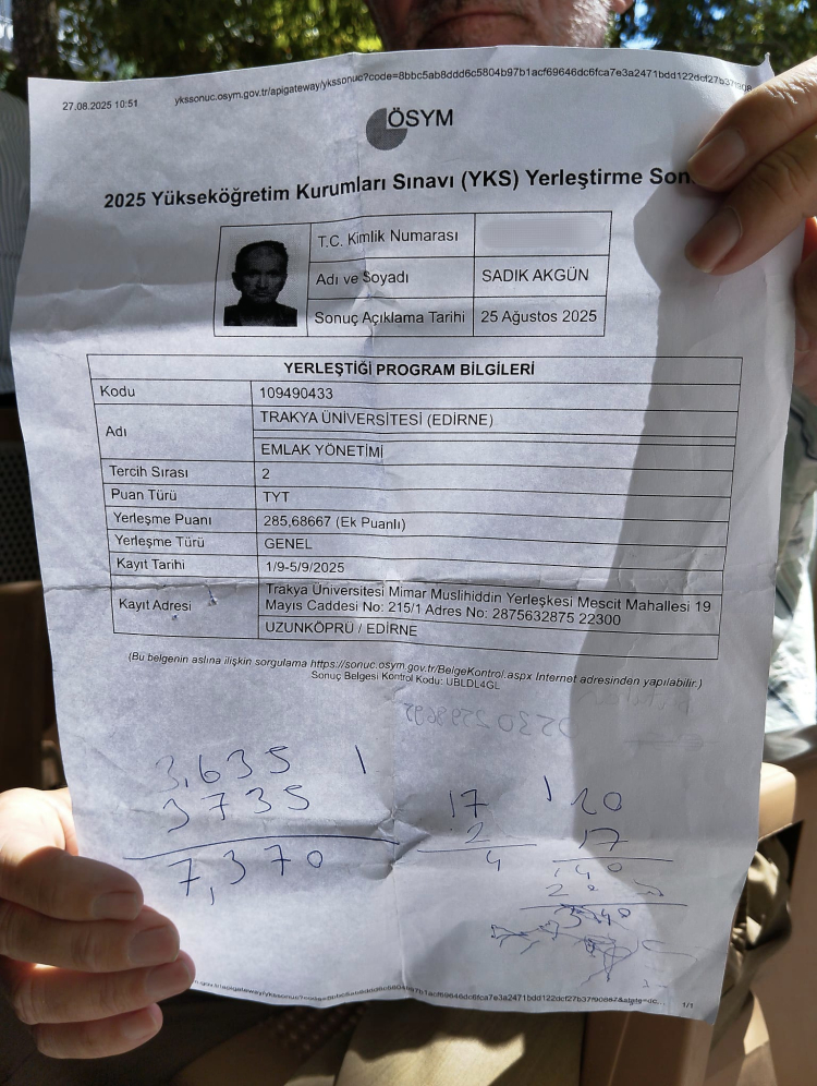Edirne’nin Hacıumur köyünde ikamet eden Sadık Akgün isimli 59 yaşında, yüzde 54 engelli vatandaş 20 yıldır üniversite sınavına giriyor. Girdiği sınavlardan birçok kez üniversite kazandığını fakat maddi imkanları yeterli olmadığı için okuyamadığını belirten Akgün, 2025 YKS sınavı sonucunda da Trakya Üniversitesi Uzunköprü Meslek Yüksek Okulu’nu kazandı.