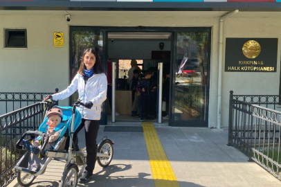 Edirne’de yaşayan 34 yaşındaki Burcu Kapkara, 8 aylık kızı Bilge ile birlikte her gün Edirne İl Halk Kütüphanesi’nin yolunu tutuyor. Kitap okumayı bir yaşam biçimi haline getiren Kapkara, bebeğini hem kitaplarla tanıştırmak hem de sosyal bir ortamda büyümesini sağlamak amacıyla kütüphaneye bisikletli bebek arabası (Taga Bikes) ile geliyor.