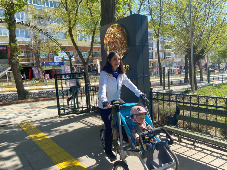 Kütüphaneye ulaşım için özel olarak ikinci el bir Taga Bikes edindiklerini ifade eden Kapkara; “Eşimle birlikte Bilge doğmadan önce de sık sık bisiklet turlarına çıkardık. Bilge doğduktan sonra bu alışkanlığı sürdürmek istedik. Bu bisiklet modeli artık Türkiye’de satılmıyor ama biz ikinci el olarak bulup aldık. Bilge ile birlikte Saraçlar Caddesi ve şehir içinde kısa turlar da yapıyoruz” dedi.
