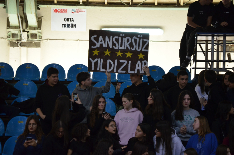 Edirne’de geçtiğimiz haftalarda oynanan maçta okul yönetimleri tarafından paylaşılan fotoğraflarda öğrencilerin üzerlerinin yıldızlarla sansürlenmesi tartışma yaratmıştı. Bu uygulamaya tepki gösteren 80. Yıl Cumhuriyet Anadolu Lisesi öğrencileri, bugün tribünlerde açtıkları “Sansürsüz Yıldızlar” yazılı pankartla dikkat çekti.