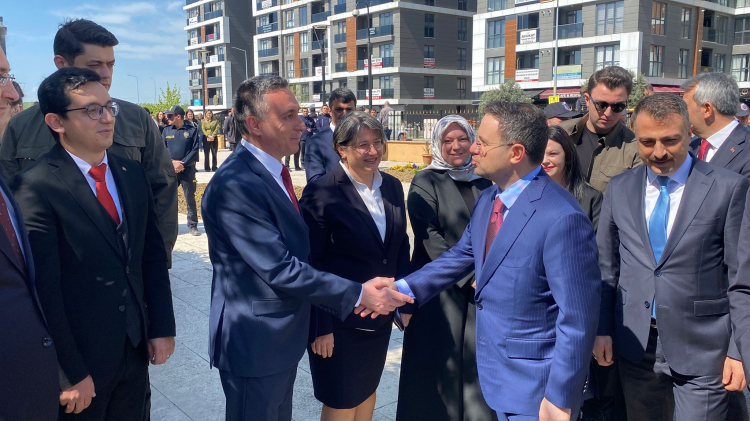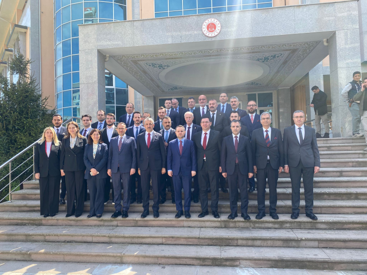 Bir dizi program için Edirne’ye gelen Adalet Bakanı Akın Gürlek, kentteki temasları kapsamında Edirne Adalet Sarayını ziyaret etti. Bakan Gürlek’i adliye girişinde Edirne Cumhuriyet Başsavcısı Tuğan Sarıca, hakimler, savcılar ve adliye personeli karşıladı.