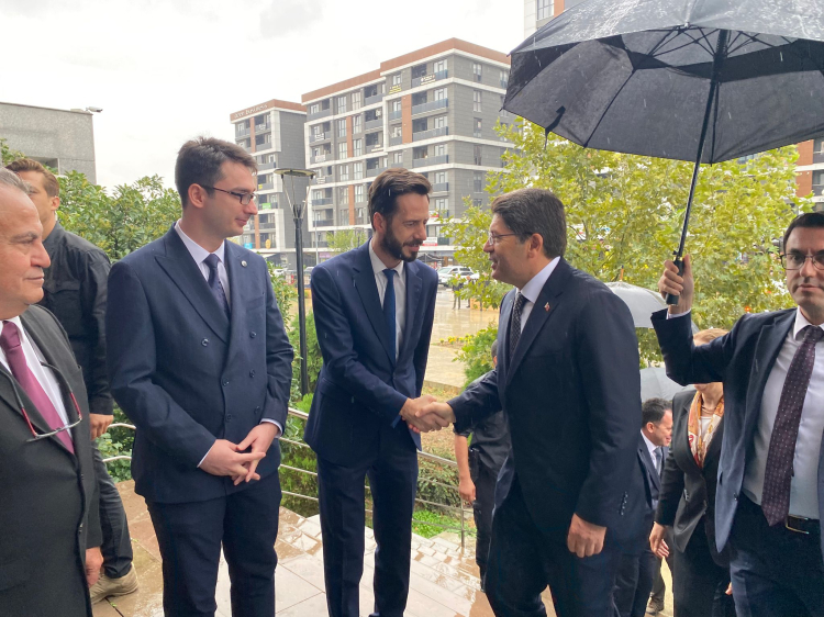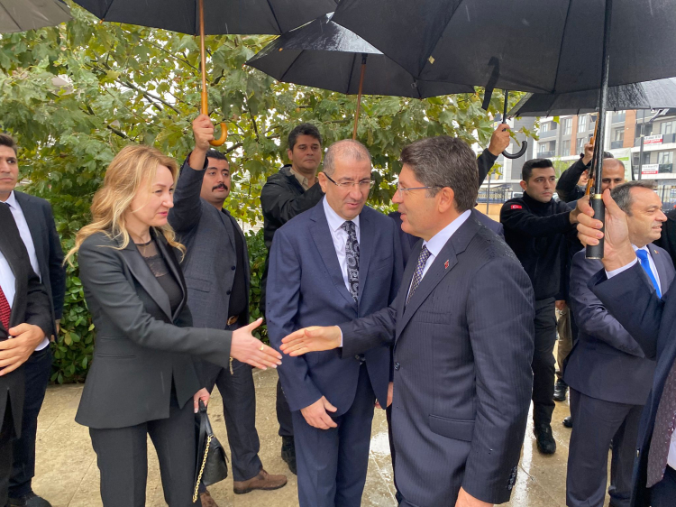 Bakan Tunç’u adliye girişinde Edirne Cumhuriyet Başsavcısı Tuğan Sarıca, hakimler, savcılar ve adliye personeli karşıladı.