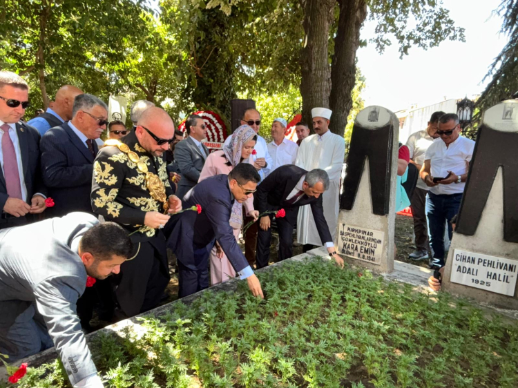 Heyet, mezarlıkta Kırkpınar başpehlivanlarından Adalı Halil ve Kara Emin’in mezarına kırmızı karanfil bıraktı. Ziyaret, okunan dualar ile sona erdi. Program kapsamında saat 12.00’de Eski Cami’de mevlit okutulacak.