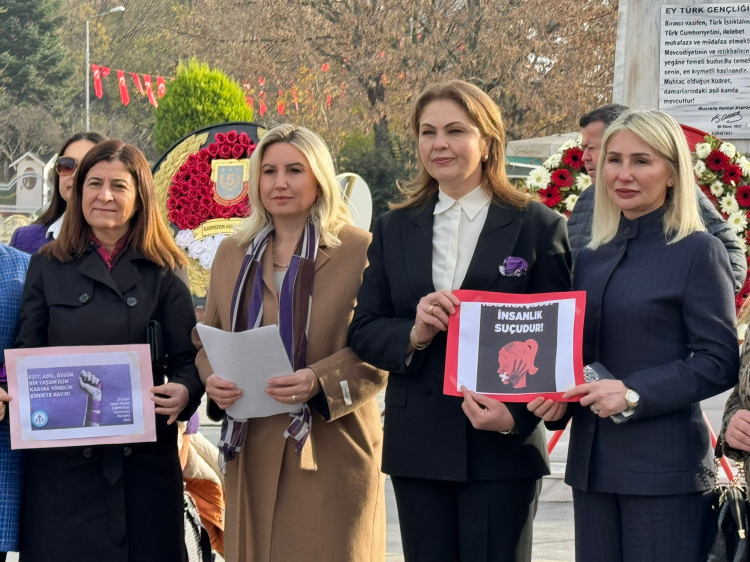 Edirne’deki Atatürk Anıtı’nda düzenlenen açıklamaya AK Parti Edirne Milletvekili Fatma Aksal, AK Parti Edirne İl Başkanı Belgin İba ve partililer katıldı.