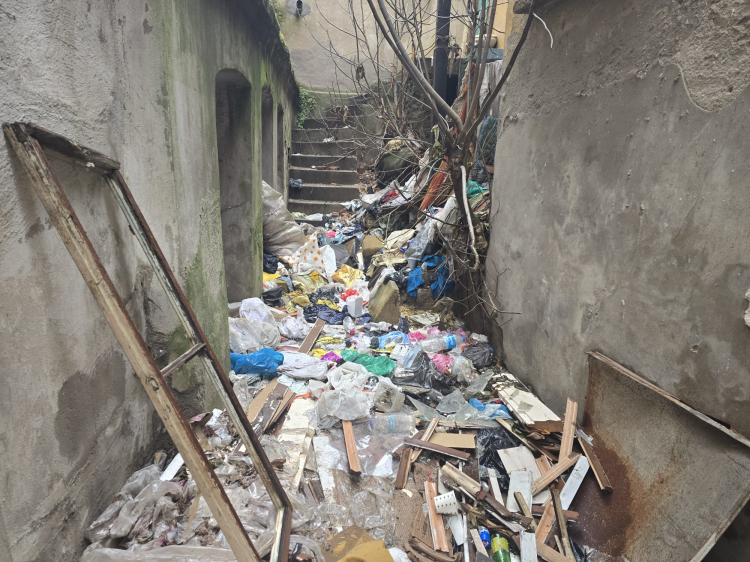 Apartman ile tarihi bina arasındaki boşlukta çöplerin hem görsel açıdan hem hijyen açısından son derece rahatsız edici olduğunu belirten mahalle sakinleri, yetkililerden bir an önce müdahale ederek çöplerin temizlenmesini istediler.