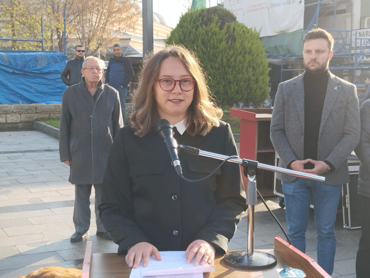 Anıttaki töreni Düzenleyen Edirne Kadın Dayanışması adına konuşan Atatürk Mahallesi Muhtarı Gülden Akman Yılmaz; 5 Aralık 1934’ün yalnızca bir tarih değil, kadınların düşüncesiyle, emeğiyle ve iradesiyle toplumsal hayatta yer aldığı bir devrimin adı olduğunu belirterek; “Atatürk, kadınlara bu hakkı tanırken sadece bir yasal düzenleme yapmadı. Kadınları Cumhuriyetin kurucu unsurlarından biri olarak gördüğünü bütün dünyaya ilan etti. Ve şu sözleri bugün hâlâ yolumuzu aydınlatmaktadır: ‘Bir toplum, cinslerden yalnız birinin yüzyılın gereklerine uymasıyla yetinirse; o toplum yarı yarıya zayıflamış olur.’ Bu söz bize bir gerçeği hatırlatır. Kadın geri itilirse toplum geriye gider, kadının sesi kısılırsa toplumun sesi kısılır. Bugün kadınların seçme ve seçilme hakkı yasal güvence altındadır. Ancak bir hakkın kâğıt üzerinde yazması yetmez; haklar, günlük yaşamda karşılık bulduğunda gerçek anlamına kavuşur. Bu nedenle kadınların siyasette eşit temsil hakkı, karar mekanizmalarında yer alması, eğitim ve istihdam olanaklarına erişimi, şiddetten uzak ve güvenli bir yaşam sürmesi, kamusal alanda özgürce var olması hâlâ mücadele gerektiren alanlardır. Edirne; tarih boyunca kadın emeğiyle büyüyen, kadın iradesiyle güçlenen bir şehirdir. Bugün de bu miras, yalnızca sözde değil, seçilmiş kadınların varlığıyla somutlaşmaktadır. Bu güçlü temsil, kadınların siyasetin her kademesinde yer almasının tesadüf değil, mücadeleyle kazanılmış bir hak olduğunu gösteriyor ve bizlere açık bir mesaj veriyor. Kadınların eşit temsili artık bir istisna değil; bu ülkenin demokrasi iddiasının en sağlam dayanağıdır. Bugün Atatürk Anıtı'na bıraktığımız çelenk; geçmişi anmanın ötesinde, geleceğe dair ortak bir söz ve kararlılık beyanıdır” dedi.