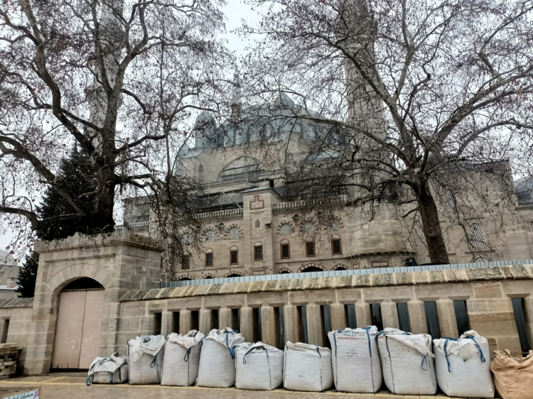 Edirne’de 2021 yılında restorasyonu başlayan Selimiye Camii’nde çalışmalar devam ediyor. UNESCO Dünya Mirası Listesi’nde yer alan ve Mimar Sinan’ın “Ustalık Eserim” dediği Selimiye Camii’nde restorasyon çalışmaları orijinaline uygun devam ederken; caminin dış cephesinde bulunan bir hasar ise merak konusu oldu.