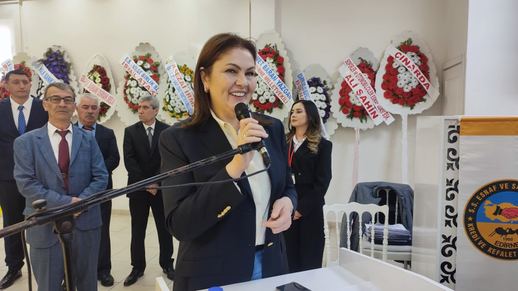 Başkan Akın’dan sonra Edirne Esnaf ve Sanatkarları Odası Başkanı Kemal Cingöz ve AK Parti Edirne İl Başkanı Belgin İba da birer konuşma yaparak genel kurulun hayırlara vesile olmasını dilediler. AK Parti Edirne İl Başkanı Belgin İba konuşmasında dün gece Cumhurbaşkanı Recep Tayyip Erdoğan’ın esnaf kredi faizleri hakkındaki kararnamesinden duyduğu sevinci belirterek; “Genel kurulunuzun hayırlı olmasını diliyorum. Edirne’deki esnafımız bizim için çok kıymetli. Biz de hükümet olarak elimizden ne geliyorsa her daim esnafımıza destek vermek için cansiperane çalışıyoruz. Dün akçam Cumhurbaşkanımızın kararnamesiyle de güzel müjdeler aldık. Kredi faizlerimiz 29’dan 25’e çıktı. Onun dışında vadesi 5 yıla çıktı ve miktarı 750 bin liradan 1 milyona çıktı. Elimizden ne geliyorsa esnafımız için ne gerekiyorsa yapmaya hazırız” ifadelerini kullandı.
