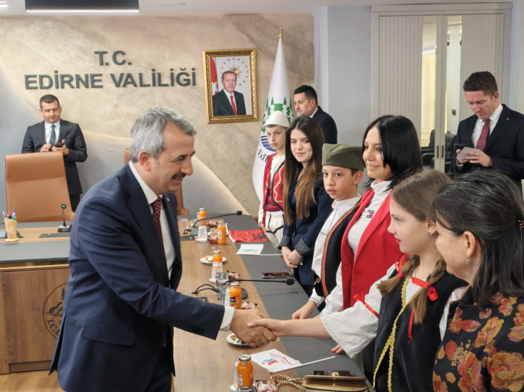 Edirne Valisi Yunus Sezer, Balkan Çocuk Şenliği için Edirne’ye Balkan ülkelerinden gelen idareci ve öğrencilerle buluştu.