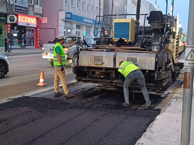 Edirne Belediyesi Fen İşleri Müdürlüğü ekipleri, Kaleiçi bölgesinde süren üstyapı çalışmaları kapsamında Bankalar Durağı olarak bilinen noktada asfalt serimi gerçekleştirdi. Yoğun araç trafiğinin bulunduğu bölgede çalışmalar, gün içi yoğunluğu etkilememek amacıyla akşam saatlerinde yürütüldü.