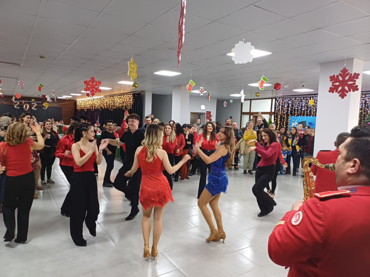 Edirne Belediyesi Atatürk Kültür Merkezi'nde gerçekleştirilen yılbaşı kutlamaları etkinliğinde Edirne Belediyesi Bandosu, vatandaşlara keyifli bir hatıra bıraktı. Bandonun çaldığı 9/8'lik ritimlere dayanamayan Edirneliler sahneye çıkarak oynamaya başladı.