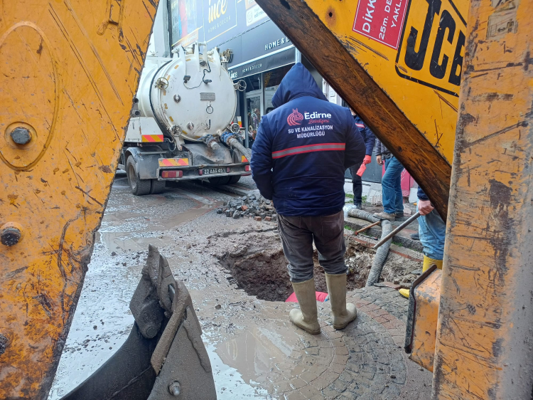 Vatandaşların arızayı bildirmesi üzerine sokağa Edirne Belediyesi Su ve Kanalizasyon İşleri Müdürlüğü ekipleri geldi. Belediye ekipleri, kepçe ve vidanjör ile patlağa müdahale ederek, hasarı giderdi.
