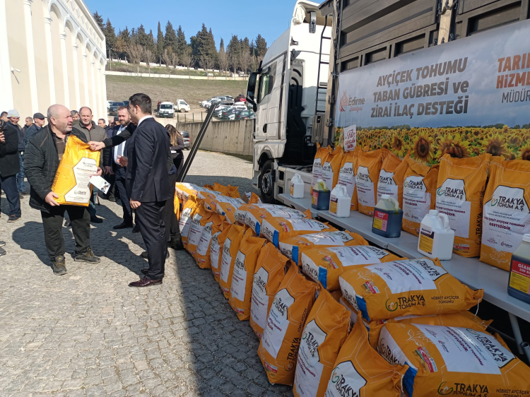 Destek alan 1 çiftçinin 30 dönüm alanda ekim yapabileceği, toplam 3 bin 300 dönüm alanda ayçiçeği ekilebilecek destekler, başta Edirne Belediye Başkanı Filiz Gencan Akın olmak üzere programa katılan CHP Genel Başkan Yardımcısı Gökan Zeybek, CHP milletvekilleri, il belediye başkanları ve parti meclis üyeleri tarafından çiftçilere dağıtıldı.