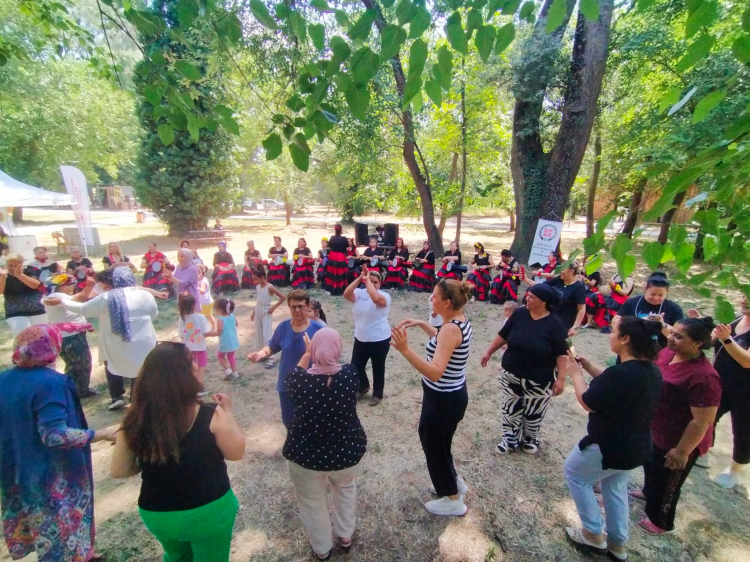 Pikniğe katılan kursiyer kadınlar, çalınan müzikler eşliğinde doyasıya eğlendi. Edirne'de kadınların kurduğu Sevgili Günebakanlar darbuka grubu da etkinlikte sahne aldı.