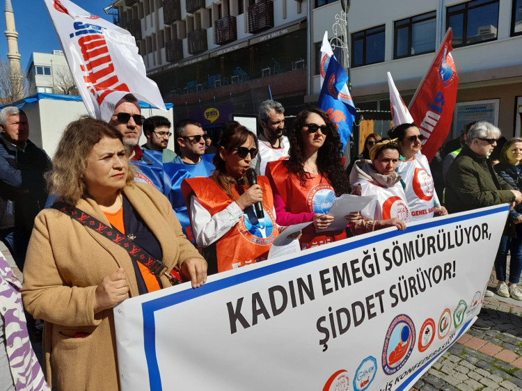 İş yerlerinde kadınlara yönelik ayrımcılığın sona erdirilmesi, eşit işe eşit ücret ilkesinin benimsenmesi ve kadınların iş gücüne katılımını teşvik edecek politikaların geliştirilmesi gerektiğini savunuyoruz. Kadın çalışanların istihdamını artırmak adına başta kreş desteği olmak üzere, esnek çalışma saatleri ve güvenceli iş koşulları gibi düzenlemelerin bir an önce hayata geçirilmesi çağrısında bulunuyoruz.