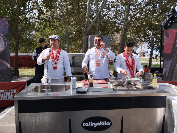 Edirne’de gerçekleştirilen Topraktan Sofraya Gastronomi Festivali’nde Hünkar Beğendi (Edirne Beğendisi) yemeği pişirildi ve tanıtıldı.