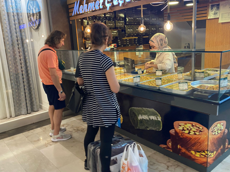 Edirne’ye alışveriş için gelen Bulgar turistler, özellikle baklava başta olmak üzere Türk tatlılarına yoğun ilgi gösteriyor.