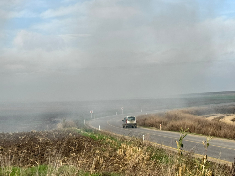 Edirne’ye bağlı Değirmenyeni köyü yakınlarında hasat edilmiş çeltik tarlasında anız yangını çıktı. Yangının dumanı Edirne’nin yüksek yerlerinden görüldü. Yoğun duman nedeniyle trafikte görüş mesafesi de azaldı.