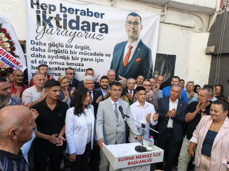 Volkan Akgüngör, CHP Edirne İl ve Merkez İlçe binası önünde, Merkez İlçe Başkanlığı adaylığını açıkladı.