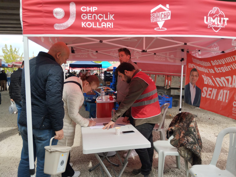 Cumhuriyet Halk Partisi (CHP), Silivri cezaevinde tutuklu bulunan İstanbul Büyükşehir Belediye Başkanı ve Cumhurbaşkanı Adayı Ekrem İmamoğlu için imza kampanyasını devam ettiriyor.