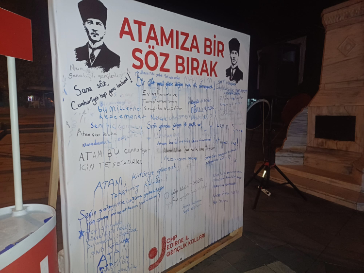 Cumhuriyet Halk Partisi (CHP) Edirne İl Gençlik Kolları, 10 Kasım Atatürk’ü Anma Günü dolayısıyla Atatürk Anıtı’nda “Ata’ya Saygı Nöbeti” gerçekleştirdi. Nöbette konuşan CHP Edirne İl Gençlik Kolları Başkanı Özgür Hata, gençliğin Atatürk ilke ve devrimlerine sahip çıkmaya devam edeceğini vurguladı.