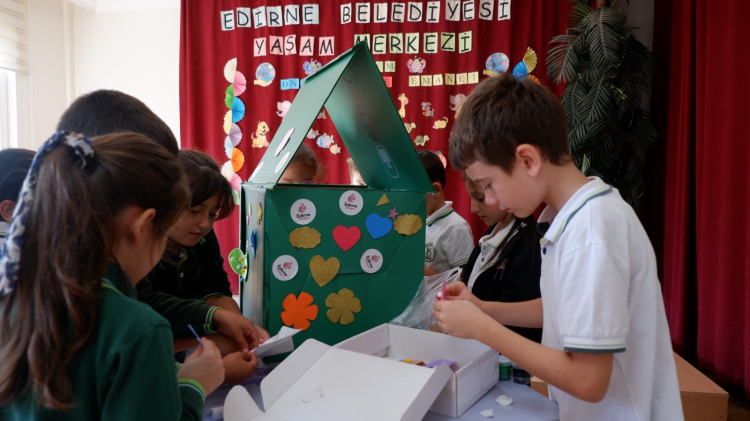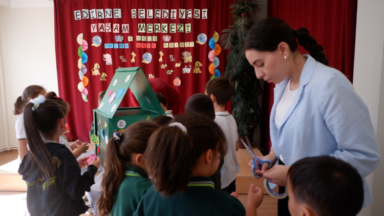 Belediye Yaşam Merkezi’nde gerçekleştirilen etkinlikte, çocuklara eğitmenler tarafından kedi-köpek evi yapımı öğretildi, kedi ve köpeklerin bakımı ile bilgiler verildi. Çocuklar boyadıkları el işlerini hazırlanan kedi-köpek evlerine yapıştırdılar. Ardından kulübeleri rengarenk boyayan çocuklar, eğlenceli anlar yaşadı.