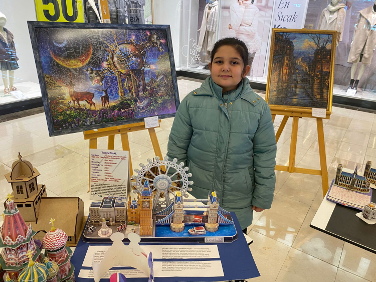 Sergide eseri bulunan 5. sınıf öğrencisi Duru Batmaz, eserinde Londra’yı işlediğini söyleyerek; “Ben Londra’yı merak ediyordum. Maketini gördüğümde bana çok hoş geldi. Denizi olması, gemisi olması çok güzel geldiği için Londra’yı seçtim. Çok keyif alarak yaptım. Bütün arkadaşlarımın emeği var çok güzel bir sergi oldu.” diye konuştu.