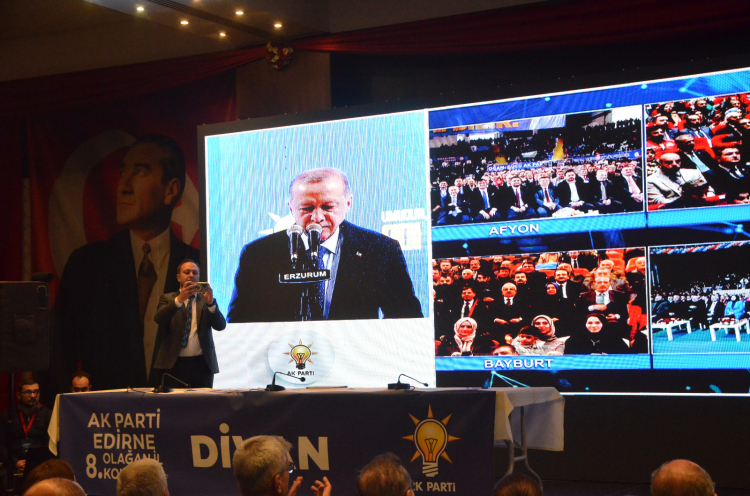 Edirne’de gerçekleştirilen AK Parti Edirne 8’inci Olağan Kongresi’ne, Sağlık Bakanı Prof. Dr. Kemal Memişoğlu ve AK Parti Genel Başkan Yardımcısı Vedat Demiröz katıldı. Kongrenin sürprizi, Cumhurbaşkanı ve AK Parti Genel Başkanı Recep Tayyip Erdoğan’ın canlı yayın ile Edirne dahil 6 ile bağlanarak seslenmesi oldu. Erdoğan, AK Parti kongrelerinin her zaman bayram havasında geçtiğine dikkat çekerek, kongrelerin tüm şehirlere ve Türkiye’ye hayırlı olmasını diledi.