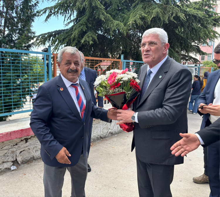 Ziyarette; Muharip Gaziler Derneği Başkanı Ahmet İsmailoğlu, İYİ Parti Genel Başkanı Musallat Dervişoğlu’na çiçek takdimi gerçekleştirdi.