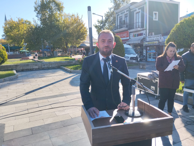 Anıta Edirne Köy ve Mahalle Muhtarları Federasyonu’nun çelenginin sunması sonrası saygı duruşunda bulunularak ve istiklal marşı okundu.