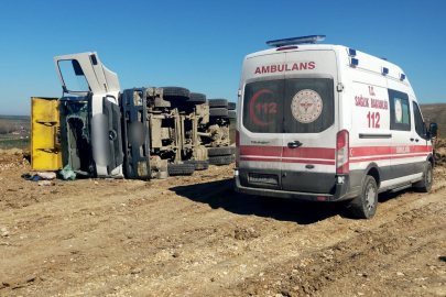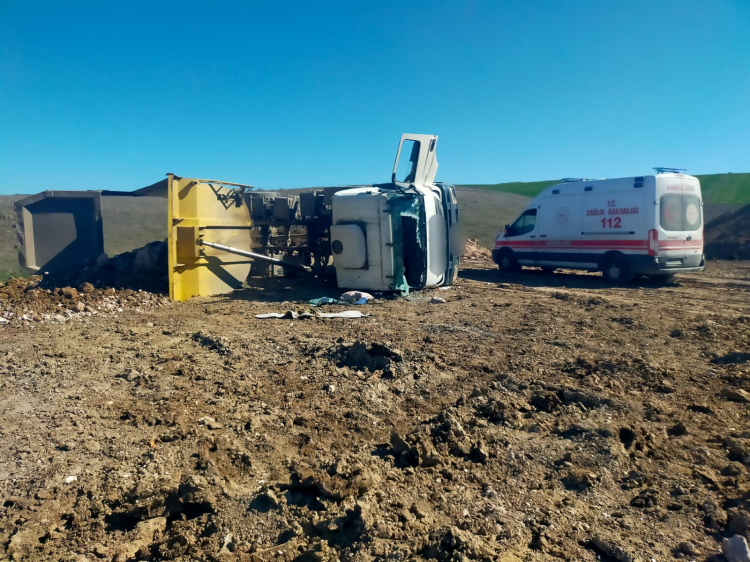 Edirne'nin Sazlıdere Köyü'nde bulunan hafriyat döküm sahasında S.A. idaresindeki 59 AFC 70* plakalı kamyon devrildi.