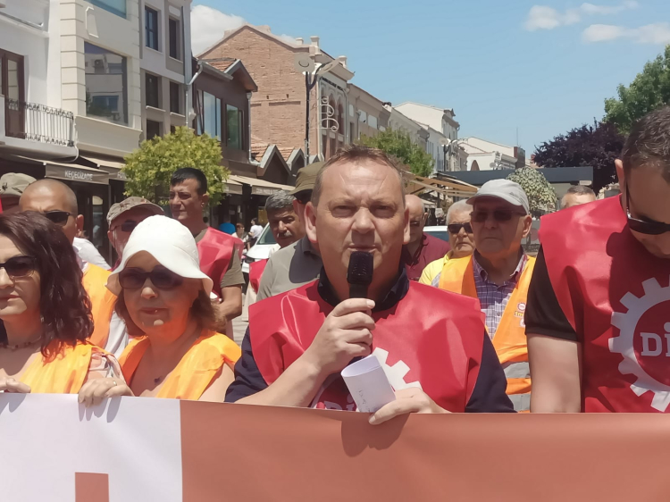 DİSK Trakya Bölge Temsilciliği, Edirne'de düzenlediği basın açıklamasıyla Türkiye'de 15-16 Haziran 1970 tarihinde gerçekleşen büyük işçi direnişinin 55'inci yılını andı.