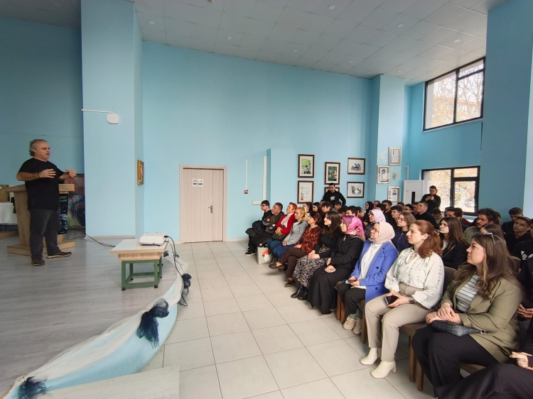 Kırkpınar Halk Kütüphanesi’nde düzenlenen söyleşiye; Kütüphane Müdürü Berna Erkan, öğrenciler ve vatandaşlar katıldı.