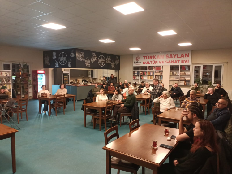 TAKSAV Edirne Temsilciliği Salonu’nda düzenlenen söyleşiye vatandaşlar ve öğrenciler katıldı. Arkeolog Dr. Doğan, bazı kaynakların Edirne’de Roma döneminde Hadrianopolis kenti kurulmadan önce 3 ayrı yerleşimin kurulduğuna dikkat çekti.