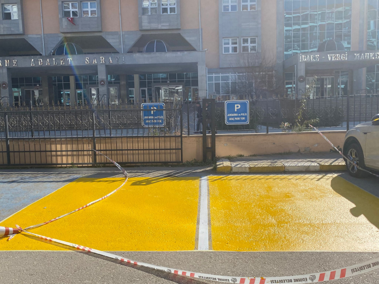 Edirne Adalet Sarayı önünde, güvenlik güçlerine ayrılan araç park alanı yeniden düzenlendi. Daha önce vatandaşlar tarafından sıkça işgal edilen park alanı, yetkililer tarafından sarı renge boyanarak belirgin hale getirildi.