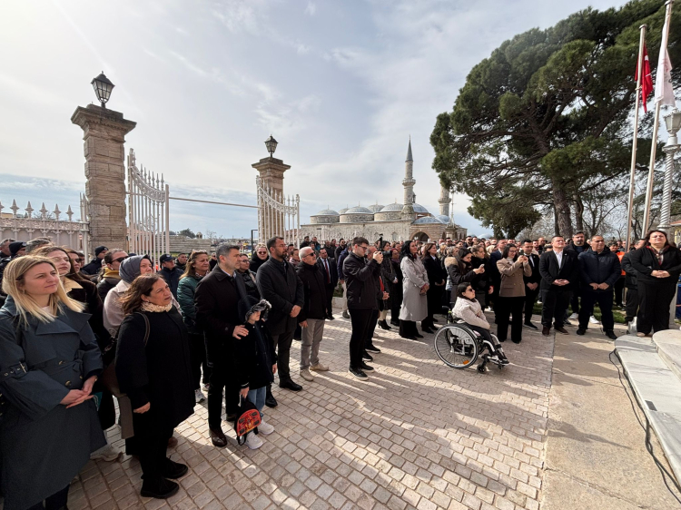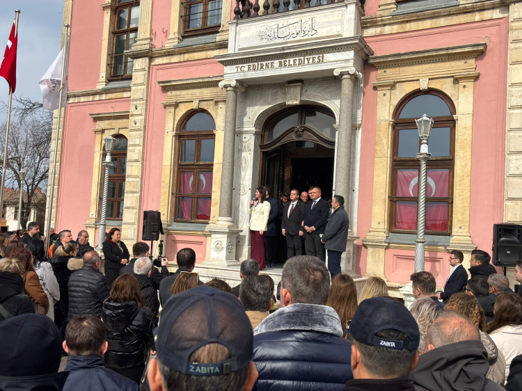 Edirne Belediye Başkanı Filiz Gencan, belediye personeliyle bayramlaşma töreninde bir araya geldi. Selimiye Meydanı’ndaki tarihi belediye binasında gerçekleştirilen törene konuşan Gencan, Ramazan ayı boyunca yürütülen çalışmalar ve yapılan organizasyonlara dikkat çekerek, emeği geçen tüm personele teşekkür etti.