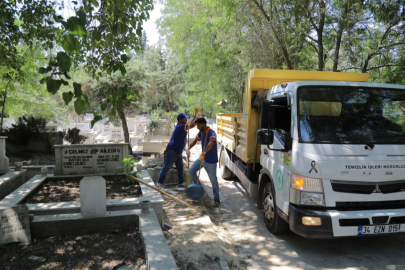 Başta Yıldırım, Buçuktepe ve Yenişehir mezarlıkları olmak üzere birçok noktada yapılan çalışmalarla, mezarlıklar bayram ziyaretlerine hazır hale getirildi. Belediye Temizlik İşleri Müdürlüğü ile Veteriner İşleri Müdürlüğü ekiplerinin ortak yürüttüğü çalışmalarda mezarlıklarda yabani otlar temizlendi, yollar yıkandı ve çevre düzenlemeleri yapıldı.
