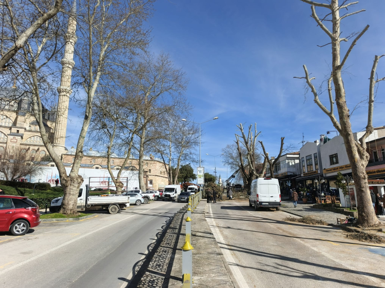 Edirne Belediyesi, Kıyık Caddesi'nde yol kenarındaki ağaçları budamaya başladı.