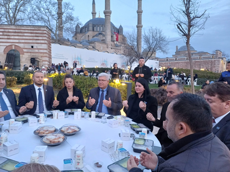 Edirne Belediyesi bugün, Selimiye Meydanı'nın bir kısmı ve Kent Lokantası önünde iftar yemeği düzenledi.
