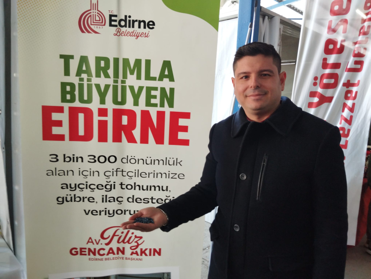 Edirne’de bugün resmen açılan Tarım, Hayvancılık, Sanayi, Ticaret, Otomotiv ve Gıda Fuarı’nda Edirne Belediyesi de stant oluşturdu. Stantta bulunan Edirne Belediyesi Tarımsal Hizmetler Müdürü Egemen Ilgın, yerli tohum konusunda çiftçileri desteklediklerini belirtti. Bu kapsamda 3 bin dönüm ekim yapacak miktarda yerli ayçiçeği tohumunu, 100 dönümden az üretim yapan küçük çiftçiye dağıttıklarını söyleyen Ilgın; “Edirne Belediyesi, şehirde tarımla ilgili olan her çalışmada sorumluluk üstlendiği, rol aldığı gibi Ticaret Odamızın öncülüğünde yapılan bu Tarım, Hayvancılık, Sanayi, Ticaret, Otomotiv ve Gıda Fuarı’nda da yerini aldı. Biz de Edirne Belediyesi olarak burada standımızı açtık. Ziraat teknikeri bir arkadaşımız sürekli burada ve çiftçilerimizin sorularını alıyor, onlara cevap veriyor. Onun yanı sıra şu an Türkiye’nin gündeminde hastalıklı tohumlar var. Bu yüzyılda savaşlar topla, tüfekle değil, gıda üzerinden, su üzerinden yapılıyor. Yurdumuza sokulmak istenen bu tehlikeli tohumlar yakalanarak tekrar ülkelerine geri gönderildi. Bu hastalıklı tohumlar tarımı yok edebilecek nitelikte tohumlardır. Biz de yerli tohum üzerine çalışmalar yapıyoruz. Bu konuya dikkat çektiğimiz bir anda biz de üreticilerimize yerli Ayçiçek tohumu dağıttık. Yerli Ayçiçek tohumu bizim bölgemizin iklimine, toprağına, coğrafyasına oldukça uygun. Buradaki topraklarda denenmiş, buradaki mühendisler tarafından geliştirilmiş çeşitler. Üreticilerimizin bazı çekinceleri oluyor tohumu tanımadıkları için fakat üreticilerimize Edirne Belediyesi olarak biz referansız. Maliyetlerini karşılayarak bu tohumları çiftçilerimize veriyoruz” dedi.