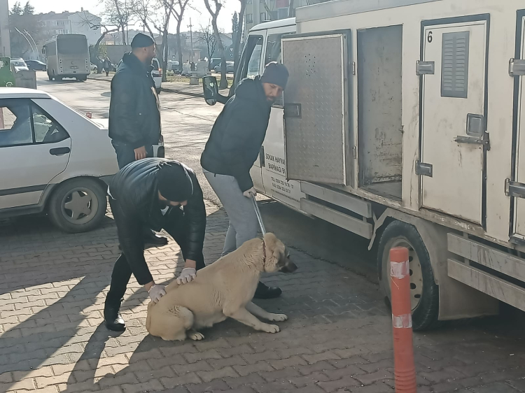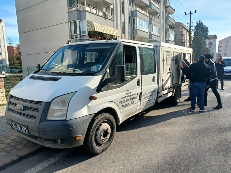 Edirne Belediyesi Veteriner İşleri Müdürlüğü Sokak Hayvanları Barınağı Birimi, bugün 1. Murat Mahallesi Haşim İşcan Caddesi'nde sokak hayvanlarını topladı.
