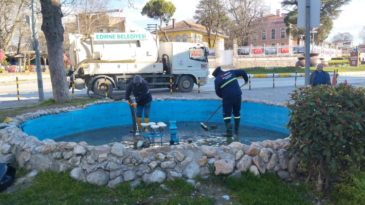 Edirne Belediyesi kış aylarında hava şartlarından dolayı kirlenen süs havuzlarında temizlik başlattı.