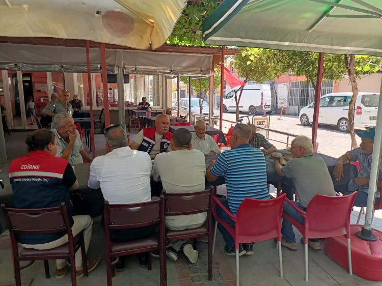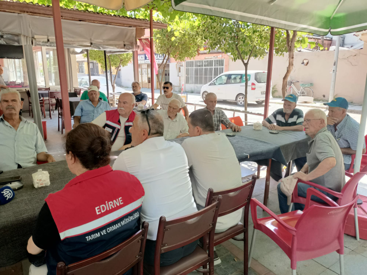 Jandarma Komutanlığı asayiş ekipleri, Tarım ve Orman İl Müdürlüğü ekipleri ve Karaağaç Muhtarı Eniz Dirim, toplantı kapsamında Karaağaç Mahallesi’nde bir kıraathanede çiftçilerle bir araya gelerek bilgilendirme yaptılar.