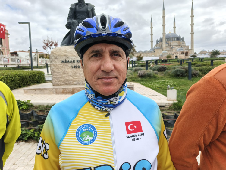 Selimiye Camii meydanındaki Mimar Sinan heykeli önünde düzenlenen basın açıklamasına EBİS Başkanı Sadi Çalışkan, Başkan Yardımcısı Mustafa Kurt, Bisiklet İl Temsilcisi Utku Zorlutuna ve dernek üyeleri katıldı.
